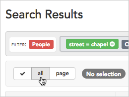 - When your search results appear, click all to select all the results in the list below.