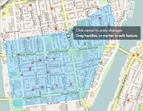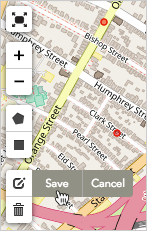 - When you’re done making adjustments to the shape’s outline, click Save in the map toolbar (or click Cancel to undo). Once you’ve clicked “Save”, the changes can’t be undone.