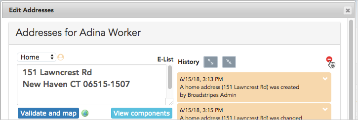 If you have an address that you want to completely eliminate from a person’s record rather than edit or mark as bad, you can choose to delete it. History of the deletion will not be shown in the address history pane. (If you have questions or want more information on working with addresses and specifics about how Broadstripes handles address data and tracks change history, check out the Components of the Address Form article.)- To delete an address, start by running a search to filter for just the contact whose address you want to delete (Learn more about creating custom searches in the Search articles).