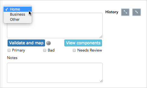 - The address could not be verified as entered and may not be deliverable by the post office: This address may contain a typo or be outdated; you should manually flag it by checking the “Needs review” checkbox to remember to correct it later. Depending on your organization’s data entry policies, you may also want to flag it by checking the “Bad” checkbox which will cause the address to be displayed with strikethrough, and prevent it from being displayed on a map or exported to spreadsheet from the search results.